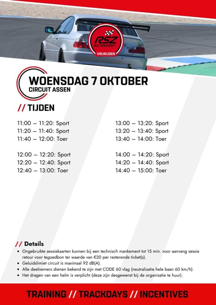 Geschikt voor zowel circuitverkenners als rijders met enige trackday-ervaring. Kom je voor het eerst het circuit op, dan adviseren we begeleiding van een RSZ-instructeur.