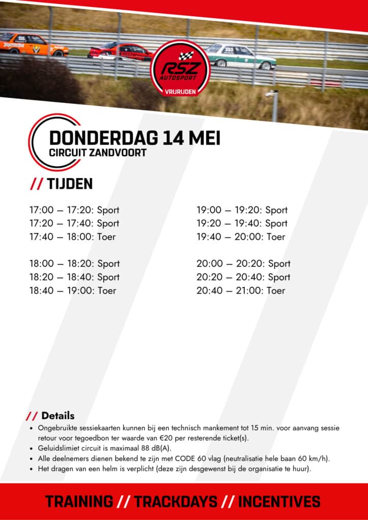 Geschikt voor zowel circuitverkenners als rijders met enige trackday-ervaring. Kom je voor het eerst het circuit op, dan adviseren we begeleiding van een RSZ-instructeur.