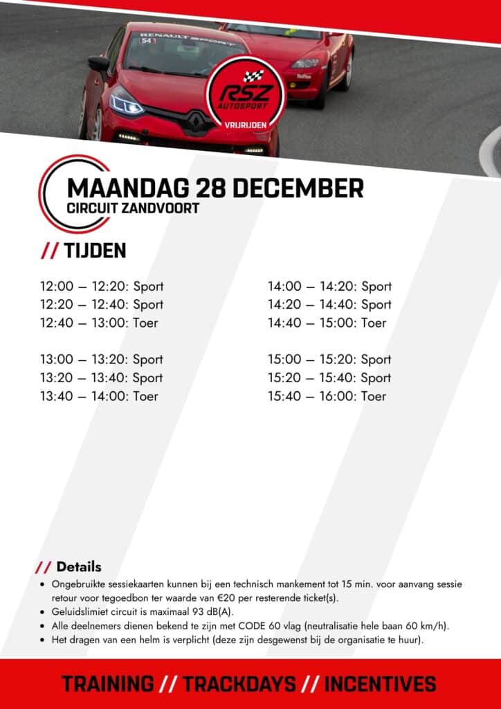 Geschikt voor zowel circuitverkenners als rijders met enige trackday-ervaring. Kom je voor het eerst het circuit op, dan adviseren we begeleiding van een RSZ-instructeur.