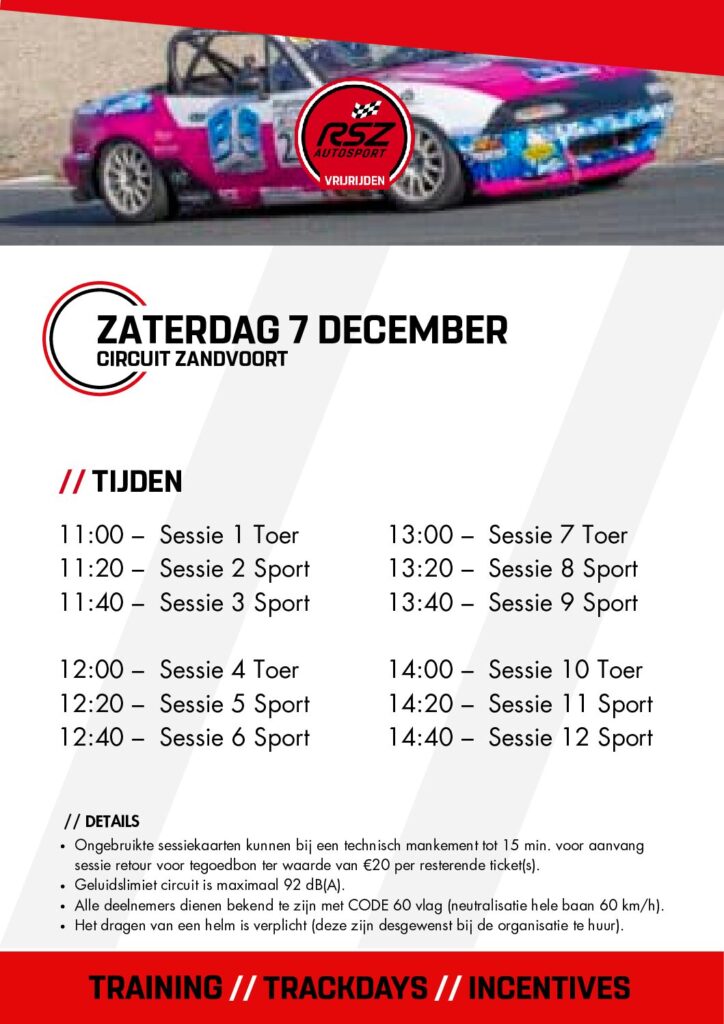 De rijder: kan een circuitverkenner zijn of juist een medium ervaren trackday-gebruiker. Wie voor het eerst komt, adviseren wij de begeleiding van een RSZ instructeur. Inhalen is toegestaan!